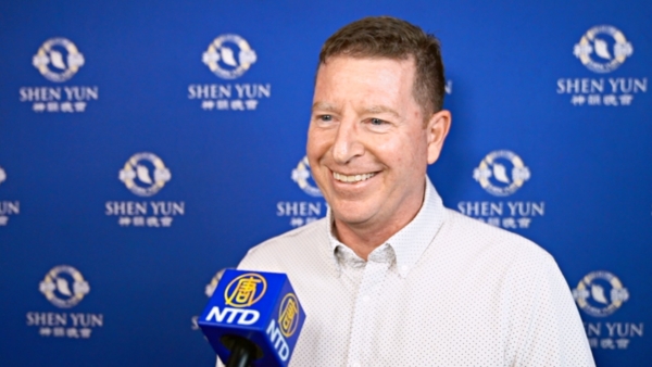 2025年12月27日,科技公司副總裁Scott Joyal觀看了神韻環球藝術團在沃特伯里派雷斯劇院Palace Theater)的演出。(新唐人電視台)