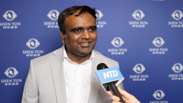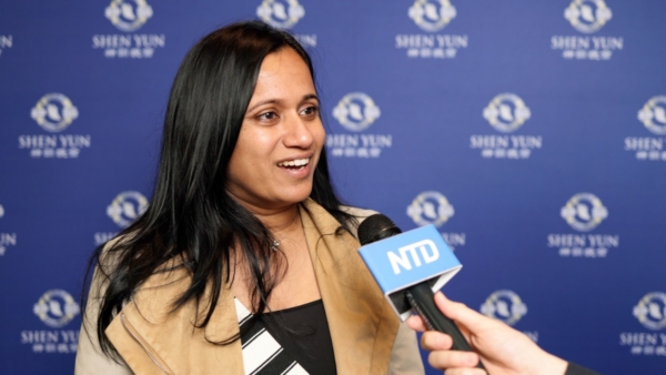 蘋果公司手機部門高級工程經理Koussalya Balasubramanian:「太棒了!這是我們第一次來看。我先生一直想來已經好幾年了,結果總有事未能成行,這是我們第一次觀賞神韻。非常喜歡。真的很好。內容豐富多彩,有很多故事。非常精彩!」
