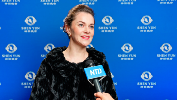 【新唐人北京時間2026年01月04日訊】1月3日晚,美國神韻巡迴藝術團在拉脫維亞首都里加的戴萊斯劇院( Dailes Theatre)進行了第二場演出。歌劇女高音艾琳娜·希姆庫斯(Elīna Šimkus)慕名而來。她驚歎神韻是一切美的化身,並被神韻深邃的神性內涵感動落淚。