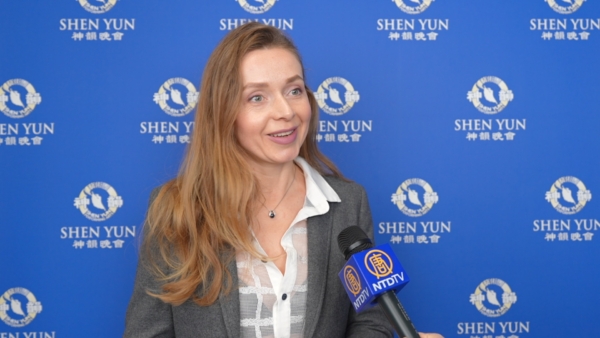 烏克蘭女設計師、畫師Ruslana Maistruk:「是的,演出很感人,因為我感覺這一切都是真實的。神韻所做的真的非常美好,打動了許許多多人的心。」