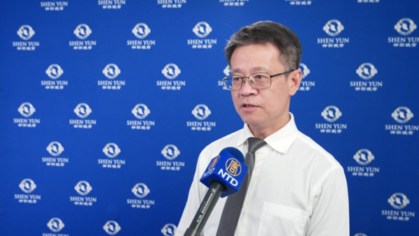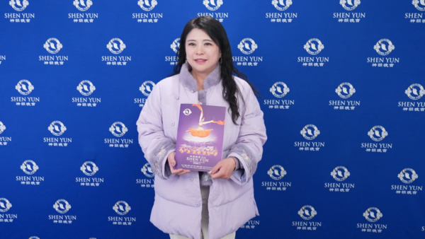 第一次觀賞神韻的公司負責人施羽柔,感動落淚,佩服演出每個細節。