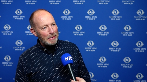 2026年1月10日,園林設計公司老闆Robert Malin在英國牛津新劇院(New Theatre)觀賞神韻環球藝術團演出。(新唐人電視台)