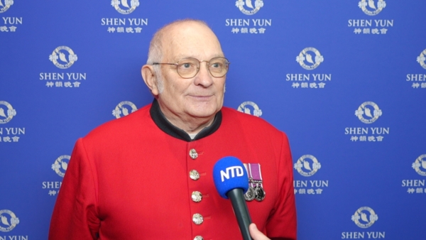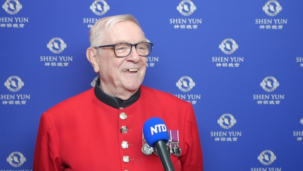 【新唐人北京時間2026年01月16日訊】1月15日下午,大英帝國獎章得主基斯·彭德爾頓(Keith Pendleton)和兩位同為切爾西退伍軍人的朋友一起,在倫敦漢默史密斯阿波羅劇院(Eventim Apollo)觀賞了美國神韻環球藝術團在當地的第三場演出。神韻藝術家高超純熟的舞蹈技藝,令三位軍人讚不絕口。