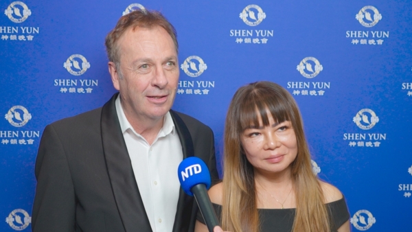 2026年1月16日晚上,建築設計公司老闆Peter Gardner攜太太一同觀賞了神韻環球藝術團在漢默史密斯阿波羅劇院(Eventim Apollo)的演出。(新唐人電視台)