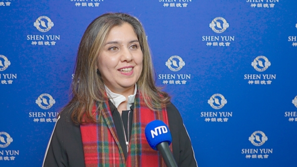 Shazia Khan:「噢,是的,完全是這樣。所以,神韻把舞蹈和敘事結合在一起,這一切都與人類的情感緊密相連,展現得非常優美,也讓人感受到那種神性的美。神韻也融入了宗教元素和他們的信仰。所以整體詮釋堪稱絕妙,我真的、真的非常享受。」
