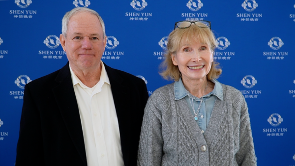2026年1月18日,前職業芭蕾舞演員Elizabeth Weis(右)與前航太公司專案總監Chuck Weis(左)在美國德州達拉斯艾斯曼中心(Eisemann Center)觀賞神韻新世界藝術團演出。(新唐人電視台)