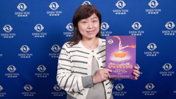 Stephanie Chen盛讚神韻藝術家精湛演出,與音樂、天幕完美結合。