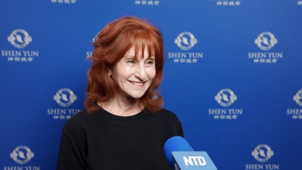翻譯公司老闆Trisha Bear:「哇!神韻的服飾、舞蹈、舞劇和翻騰技巧等一切,打造了這場精彩絕倫的演出。我喜歡神韻善用天幕科技,演員自由進出天幕,動畫效果與真人演出的巧妙結合。這對我來說是全新的體驗,非常優美,極富創意。」