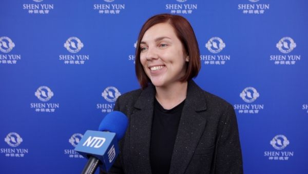 Natalie Nalyvaiko:「我真喜愛神韻,感激藝術家們為演出傾注如此巨大的心力,我喜愛神韻的舞台設計,動態天幕的效果極具巧思,我很喜愛。我熱愛民族舞蹈,所以為此而來,我也喜愛引人入勝的五千年中華文化。我真是熱愛神韻。」
