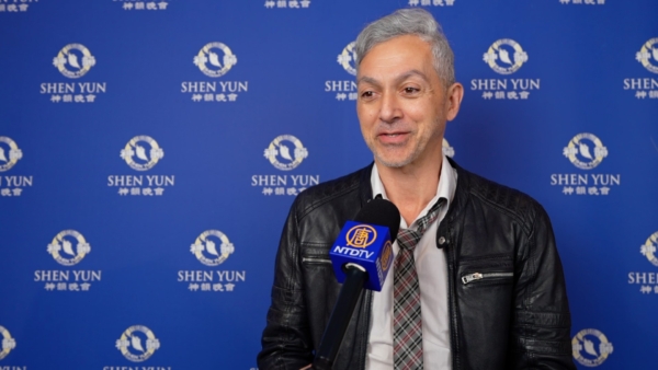 2026年2月10日晚,瑞士名錶製錶師Victor RODRIGUES觀看了美國神韻國際藝術團在法國第戎的第三場演出。(新唐⼈電視台)
