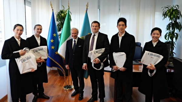 神韻意大利語主持人Massimiliano Russano 在發言中表示, 神韻是全球首屈一指的中國古典舞和古典音樂藝術團。神韻的使命是復興根植於五千年神傳文化的純正中國傳統文化之美及其價值。藝術的領域無限廣闊,藝術的目的不僅在於娛樂,更在於教導、啟蒙、心靈昇華和頌揚神性。在此,我們向意大利政府和機構致以最誠摯的謝意,感謝他們為迎接我們所做的努力和奉獻。
