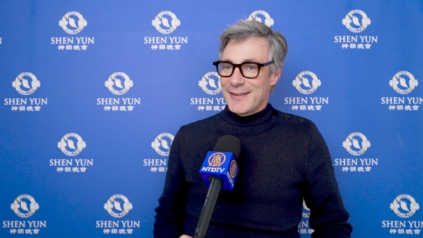 2026年2月21日下午,律師Charles Oger觀賞了神韻世界藝術團在法國南特市議廳(Cité des Congrès de Nantes)的演出。(新唐人電視台)