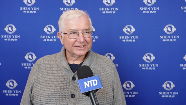 2026年2月21日,前物流貨運公司經理Keith Hetzel在印第安納波利斯巴特拉藝術中心克勞斯紀念堂(Clowes Memorial Hall, Butler Arts Center)觀賞神韻巡迴藝術團演出。(新唐人電視台)