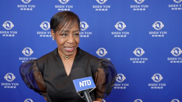 2026年2月21日,製作公司老闆、作家Dorene Lewis在印第安納波利斯巴特拉藝術中心克勞斯紀念堂(Clowes Memorial Hall, Butler Arts Center)觀賞神韻巡迴藝術團演出。(新唐人電視台)