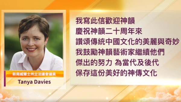 多位政要向神韻發出賀信,高度讚揚神韻復興傳統文化的使命。昆士蘭聯邦議員斯科特·布赫兹熱烈歡迎神韻到訪,讚揚神韻傳遞慈悲、勇氣與希望的普世主題。澳大利亞新南威爾士州議員坦婭·戴维斯恭賀神韻藝術團巡迴20周年,讚揚神韻對藝術做出的傑出貢獻,並鼓勵繼續保存這份美好的文化。其他政要也紛紛致賀,讚歎神韻涵蓋5000年歷史的美德,如仁慈、正義、智慧、忠誠與孝道,為澳洲社會帶來深遠及正面的影響。