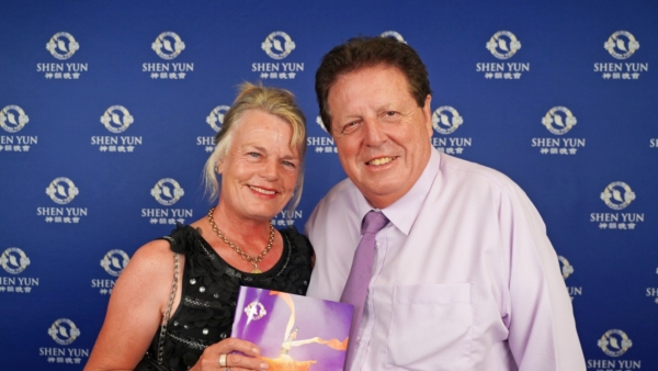 2026年2月27日,診所老闆Terry MacGinley(右)攜針灸診所經理Trish MacGinley一同觀賞了美國神韻新紀元藝術團在澳大利亞黃金海岸藝術中心(Home of the Arts)的演出。(新唐人電視台)