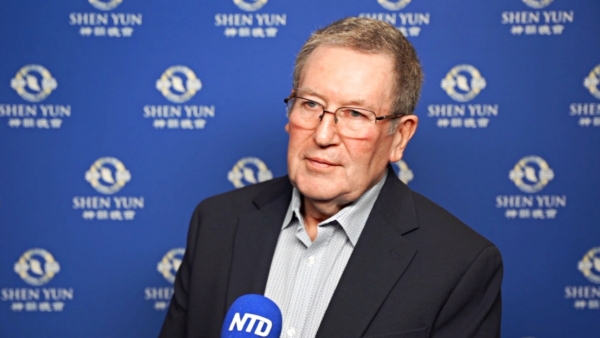 2026年2月28日晚,前英國鐘錶師協會董事Robert Moir觀看了神韻環球藝術團在英國海威科姆天鵝劇院(Wycombe Swan Theatre)的演出。(新唐人電視台)