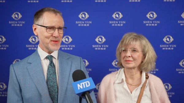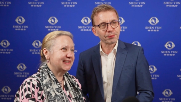 2026年3月7日晚,杜塞爾多夫大學教授Matthias Kassack和太太 Birgit Kassack觀看了神韻國際藝術團在德國米爾海姆城市劇院戲劇廳Stadthalle Mülheim an der Ruhr – Theatersaal)的演出。(新唐人電視台)