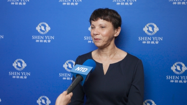 前會計師Barbara Ledbetter:「演出非常美麗、令人驚歎。我很喜歡神韻把這樣的文化分享給大家。我這幾年一直想來看神韻,很高興這次終於如願。演出真的很美,色彩繽紛,故事也十分動人。」