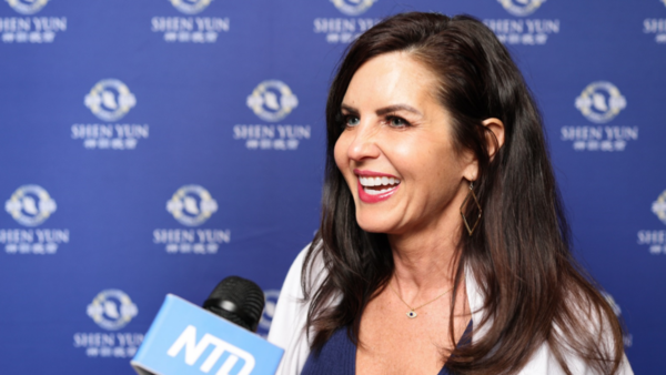 銀行信息科技副總裁Jeannie Barry:「太棒了。我簡直太激動了。那些色彩、舞蹈,還有演出喚起人們的情感,都太棒了。我喜歡他們把這一切的背景介紹出來,我想這就是法輪功,對,就是修煉法輪功。我喜歡他們把這些都融入演出之中。」
