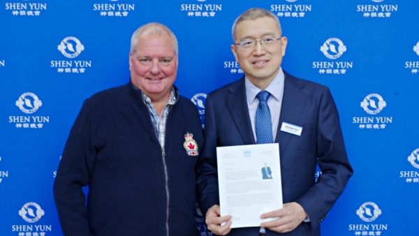 【新唐人北京時間2026年03月18日訊】美國神韻國際藝術團在加拿大巡迴演出的第二站密西沙加市再次掀起熱潮。3月14日下午,密西沙加市市議員布萊特·巴特(Brad Butt)親臨密西沙加表演藝術中心(Living Arts Centre)觀賞演出並向神韻頒發褒獎。巴特議員連續多年支持神韻,他對演出的藝術價值與文化意義深表讚賞。