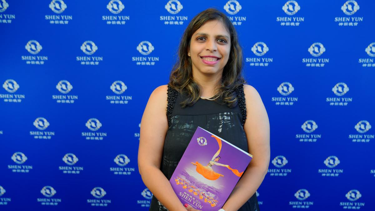 醫生Neha Kasat:「演出太棒了,真是太美妙了。其實我大概六、七年前就一直想來看神韻演出,但總有些事阻礙,一直沒能成行。今天,我就單獨來了,把丈夫留在家裡照顧孩子。而今天的體驗太精彩了。我真的很喜歡(演出中的)故事、那些色彩、演員的表情以及舞蹈的姿態。這是我第一次觀看神韻,開場那一幕,就像天堂一樣,太美妙了。我能理解每個故事及其文化,因為在每個節目之間,主持人都會出來做介紹。演出令人驚歎,那場景真的就像天堂,(我)彷彿真的到天堂了。」