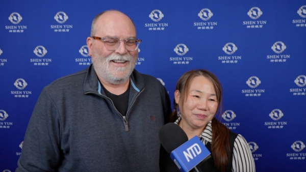 先生Earl Harris:「中華文化非常鮮活,神韻呈現得非常好。我覺得人與人之間應該彼此包容、好好相處。現在世界上有太多邪惡,人們難以溝通、難以相處,這讓人感到遺憾。但這場演出傳達了很好的訊息,我非常喜歡,是一場很棒的演出。」