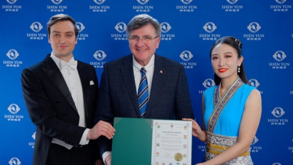 【新唐人北京時間2026年03月30日訊】3月28日下午,美國神韻國際藝術團在加拿大多倫多四季表演藝術中心進行了首場演出, 當地國會議員Costas Menegakis親臨劇院向神韻藝術家頒發褒獎,祝賀神韻世界巡迴演出20周年,看完演出後他表示,神韻傳遞的信息非常清晰和深刻,讓他產生強烈共鳴,他向所有人推薦神韻。