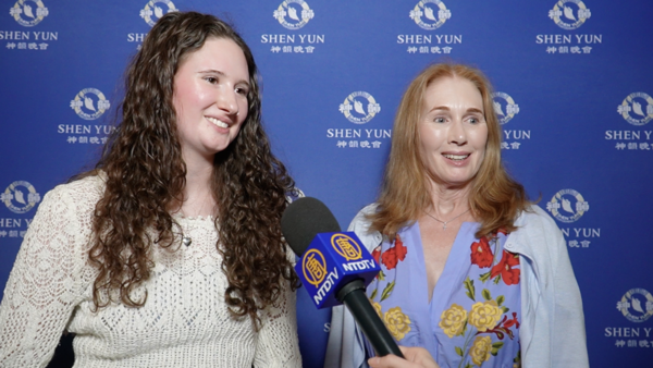 母親Cate Kautz:「我一直在關注(法輪功受迫害的)情況和中共活摘器官的罪行。身為醫療工作者,這讓我特別有感觸。所以看到那一段演出時,我真的感動到落淚。」
