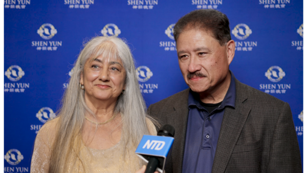 2026年3月28日晚上,數學教授Randy Rosenberger與夫人Sandy Marquez共同觀看了神韻巡迴藝術團在加州首府沙加緬度安全信用聯盟表演藝術中心(SAFE Credit Union Performing Arts Center)的演出。(新唐人電視台)