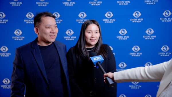 華人新移民劉海陽: 「其實最震撼的就是讓我感覺到完全不一樣的文化世界。對,在紐約的時候我就聽說過神韻,當時沒有機會去參加去觀看,今天很榮幸來到這邊,讓我感受到了另外一種中華民族的文化,一種華夏民族的傳承的感受,讓我今天有點激動,真的有點激動。」