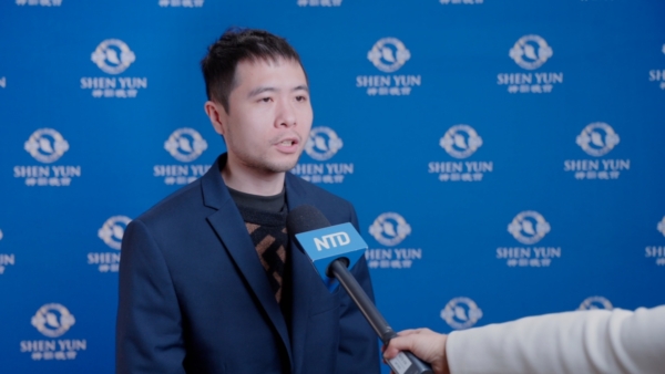 華人新移民吳振宇:「最大感受,因為在國內沒看過,但是聽說過,之前在國內,因為只有翻墻可以聽說神韻。今天第一次,沒想到在 能夠現場看到這個節目,感到很震撼,最震撼的是什麽?居然這麽多除了中國人的外國人,大部分,我感覺居然是外國人很多來看這個節目,沒想到他們也會喜歡這種中國的傳統文化。」